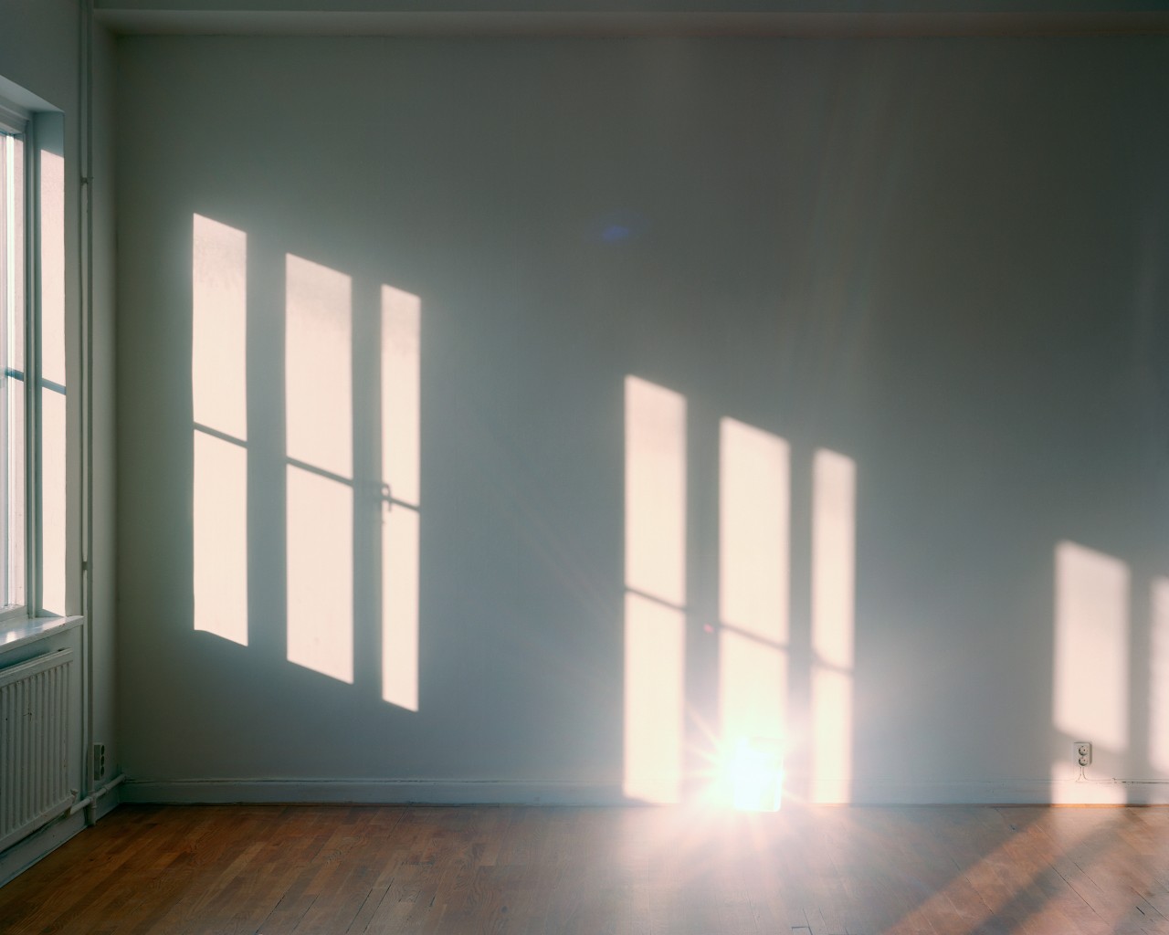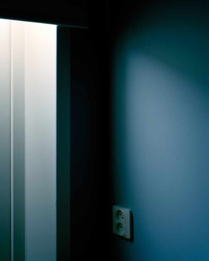 There is a painterly quality in Kalle Sanner photographs and the darkest ones recall Mark Rothko’s saturated and rust-red images. He dwells not in the gloom but allows light to guide him through the rooms. He observes how the winter sun’s raking light induces the walls’ surfaces and then lets his eyes wander out the window until the image dissolves into a white cloud. In the images, he focuses on details which, when illuminated, receive a monumental character. His subtle observations of geometric shapes – where tall towers emerge from the shadows – creates a sense of vertigo. If photographs are drawings in light you could say that Kalle Sanner’s portrait of light actually captures the essence of photography.
