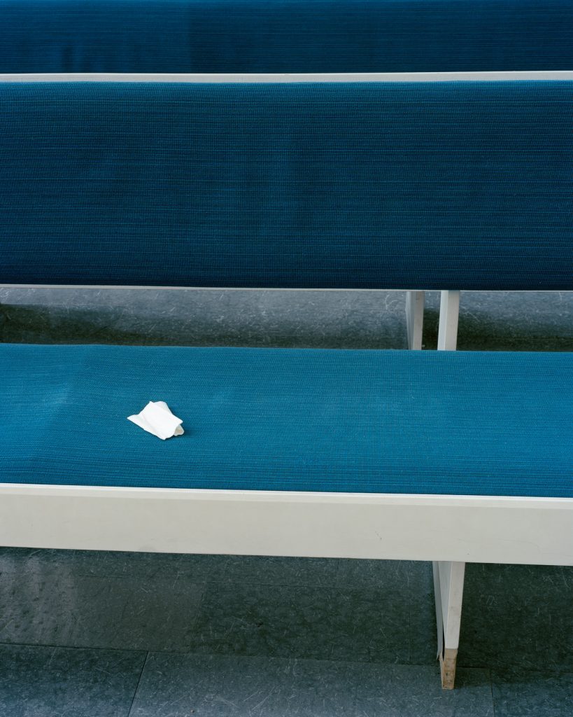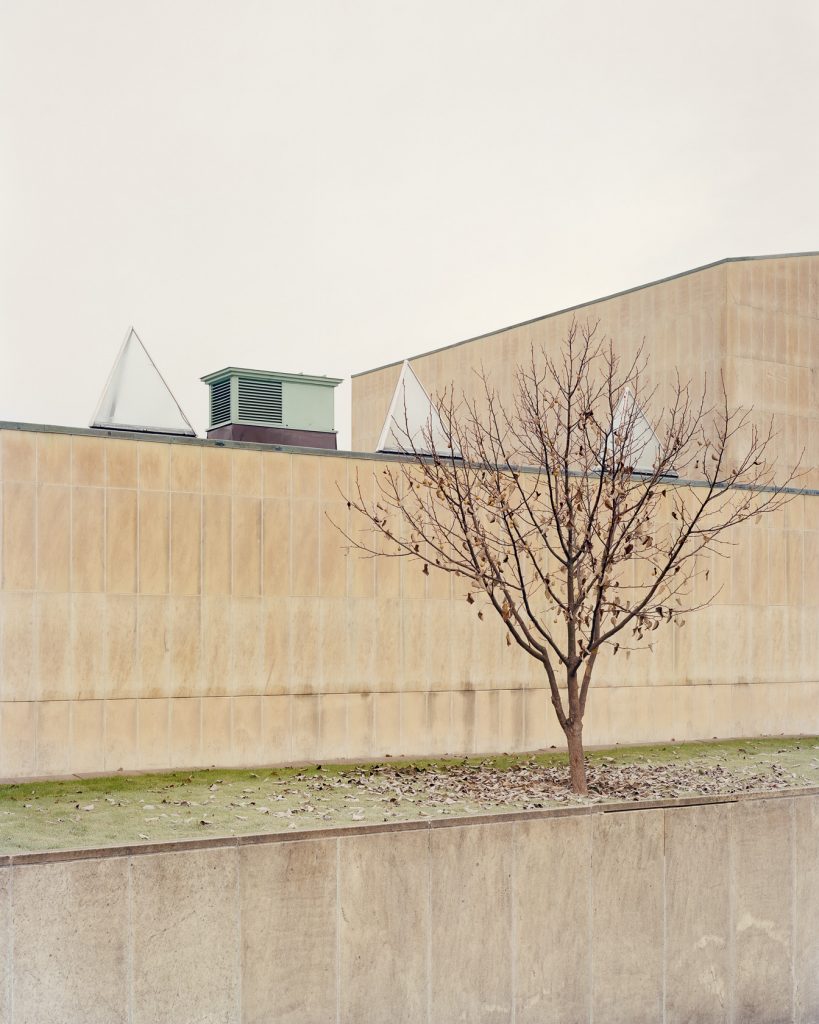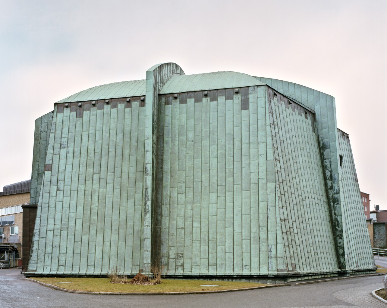 Lukas/Markus is the result of a photographic project spanning over a decade. Located in the Western Cemetery in Gothenburg, architect Sven Brolid’s two mirrored chapels Saint Lukas and Saint Markus were designed and built in the 1960:s, the era when Swedish functionalism was at its very peak. A stark silhouette in the otherwise sparsely built-up cemetery, the building does little to blend in with its surroundings. However, there is harmony to be found in the fine tuned correspondence between the materials and in the considered, geometrical features giving the building its characteristic appearance.